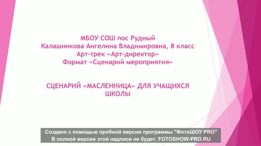 Арт-трек "Арт-директор", формат "Сценарий мероприятия", Сценарий "Масленица"
