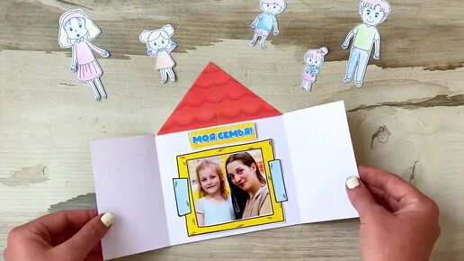 Открытка поделка на День Семьи для детей в садик, в школу с шаблонами. "Моя семья" Объёмная поделка.