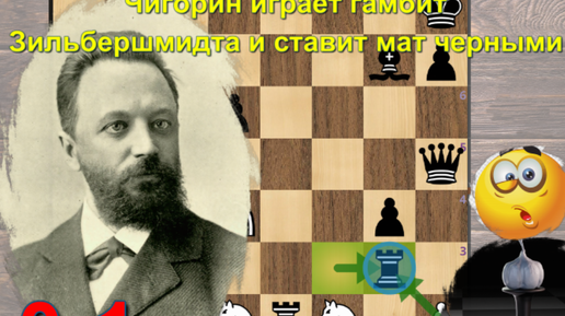 Михаил Чигорин играет черными бесродобно, решая против новичка задачу на постановку мата (Петербург, 1875, 0-1)
