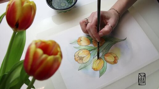 Акварельные тюльпаны