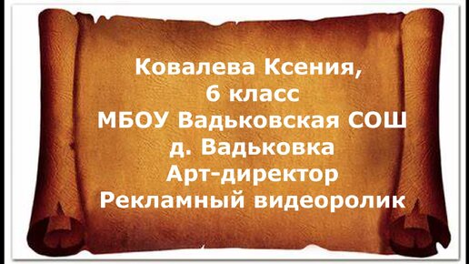 Арт-директор Рекламный видеоролик Ковалева Ксения, 6 класс МБОУ Вадьковская СОШ д. Вадьковка