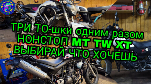 Три мотоцикла одним разом! Техническое Обслуживание YAMAHA TW 225 YAMAHA XT 660 YAMAHA MT-07