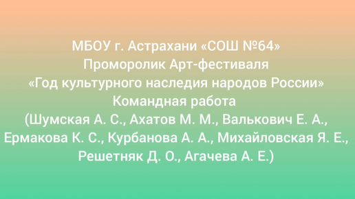 Проморолик Арт-фестиваля «Год культурного наследия народов России»