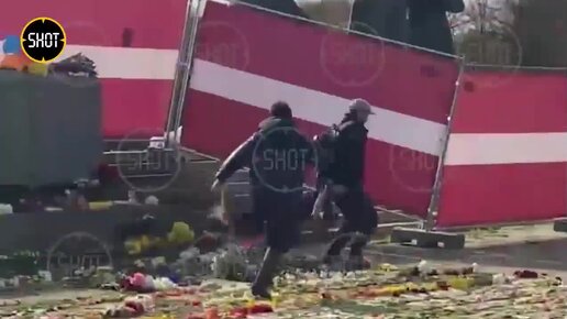 Полицейские Риги прогоняют с площади девушку в слишком российском платье