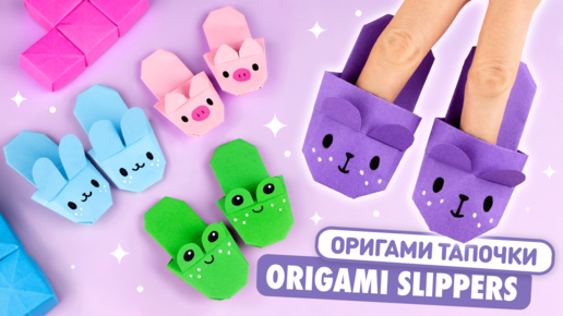 Милые Оригами Тапочки Зайчик, Мишка, Лягушка из бумаги