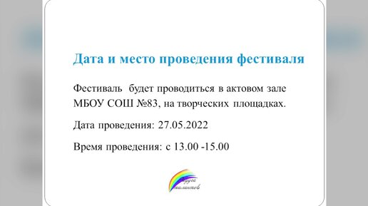 Проморолик "Школьный фестиваль "Радуга талантов - 2022"