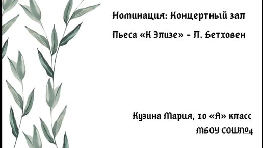 Пьеса "К Элизе" Бетховен. Кузина Мария 10А класс