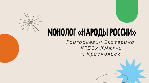 Работа на всероссийскую креативную олимпиаду "Арт-Успех". Монолог "Народы России"