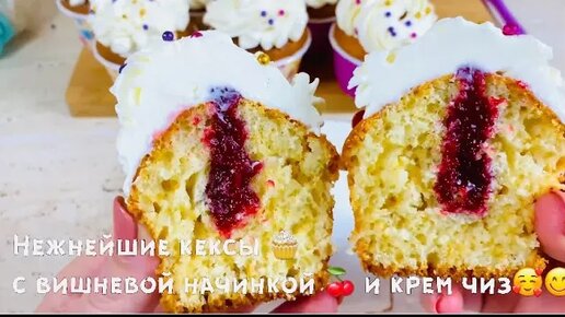 Вкусные кексы с вишнёвым конфи и крем чиз🧁🍒