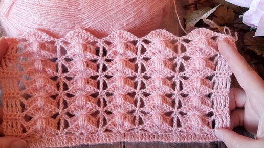 ЛОВИТЕ узор с ажуром, рельефом и шишечками КРЮЧКОМ. Раппорт 2 ряда.
