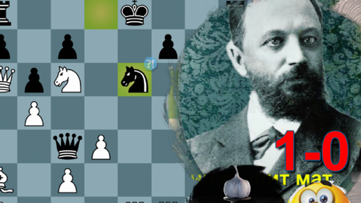 Чигорин беспощаден: громит белыми аж жуть Амоса Берна - мат в итоге неизбежен, черные сдались, поджав хвост (США, 1889, 1-0х)