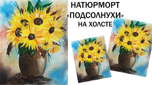 Как нарисовать подсолнухи в вазе. Как нарисовать натюрморт. Рисуем картину на холсте.
