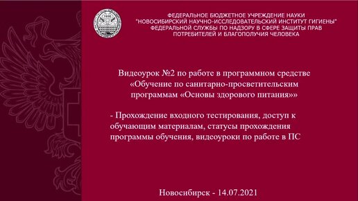 Видеоурок №2. Прохождение входного тестирования, доступ к обучающим материалам