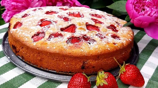 Пышная и очень вкусная шарлотка с клубникой. Клубничная шарлотка. Быстрый пирог с клубникой!