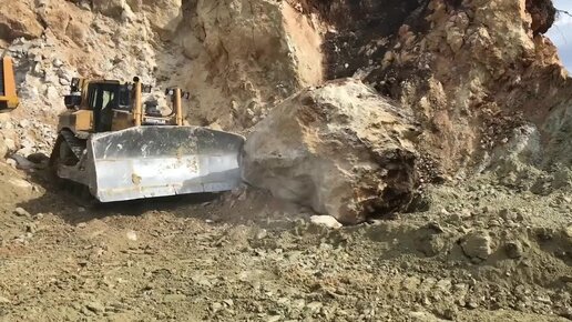 Бульдозер Caterpillar D8T толкает ОГРОМНЫЙ камень!