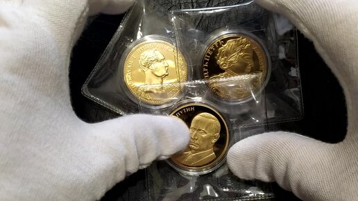 Пётр 1, Николай 1 и В. В. Путин на монетовидных жетонах Императорского монетного двора.