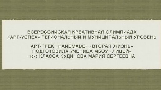 Кудинова Мария МБОУ "Лицей" 10-2 класс. Арт-трек "Handmade". Вторая жизнь.