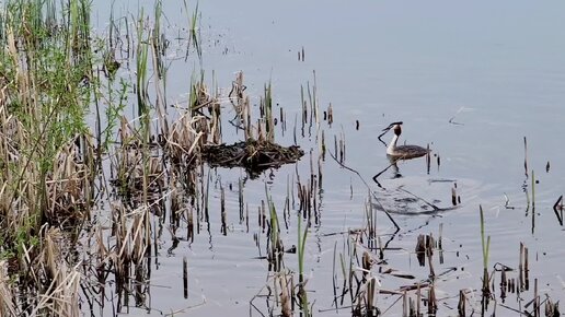 Чомги строят себе гнездо в московском пруду