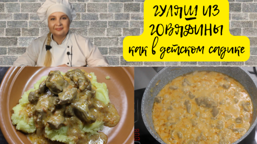Гуляш из говядины с подливой как в детском саду. Блюдо для детей и взрослых.