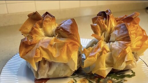 Мешочки с марципаном и сливой. Десерт из теста фило
