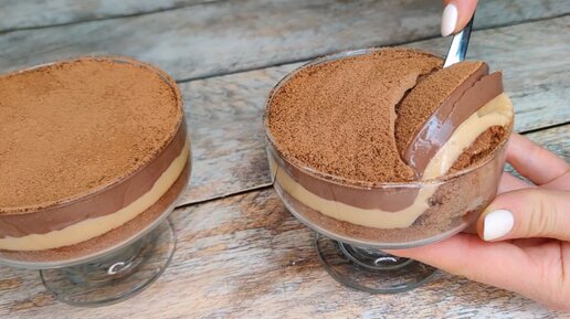 Десерт за 5 минут. Без духовки, без желатина Карамельно-шоколадный десерт пудинг.