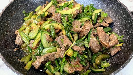 Теплый салат с говядиной, с фасолью, с огурцами. Рецепт теплого салата с мясом по корейски.