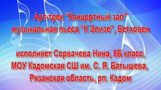 Арт-трек "Концертный зал", музыкальная пьеса "К Элизе", Бетховен