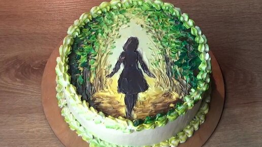 Украшение домашнего торта. Попыталась написать кремом пейзаж с девушкой - вот такая "живопись" у меня получилась!