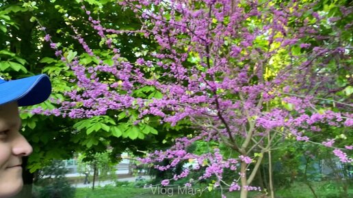 Семья в России. Прогуливаемся по парку. Красиво расцвела сакура. Зашли поужинать в кафе