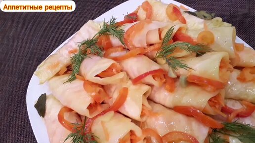 РУЛЕТИКИ ИЗ МАРИНОВАННОЙ КАПУСТЫ С МОРКОВЬЮ