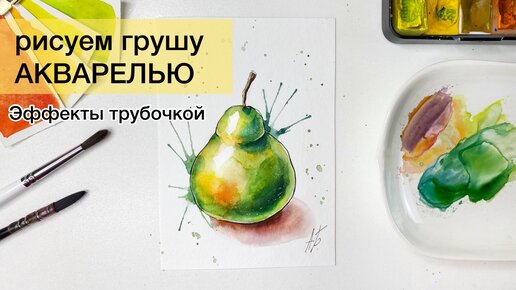 Акварель для начинающих. Эффекты трубочкой. Рисуем грушу