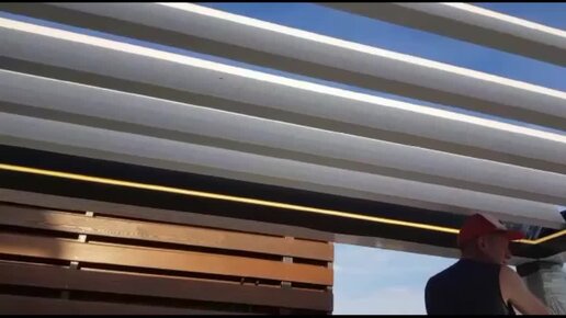 Навес с поворотными секциями на автоматическом управлении: когда элементы соединяются — образуется крыша, защищающая от дождя