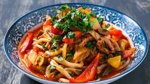 Домашний лагман. Густой, вкусный суп. Узбекская кухня.