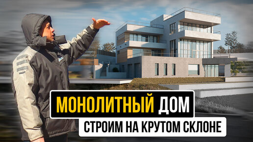 МОНОЛИТНЫЙ ДОМ на КРУТОМ СКЛОНЕ. Строительство домов в современном стиле. Hi-Tech Monolit. Токсово.