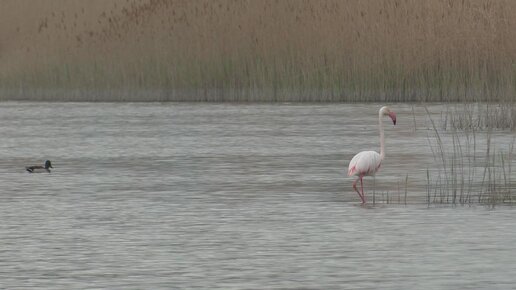 Гостья из дальних стран. Отставший от стаи розовый фламинго обживается в лимане Новороссийска