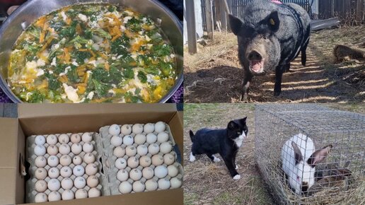 Влог: свиньи гуляют последний раз. Первый полезный суп. Закупила большую партию яйца