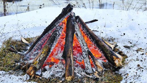 Костер у реки зимой. Расслабляющий костер и звуки природы. Потрескивание дров в огне, шум огня, для отдыха и медитаций. Зарисовки о природе.