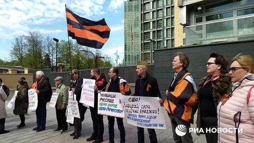 У посольства США в Москве проходит акция в поддержку денацификации Украины