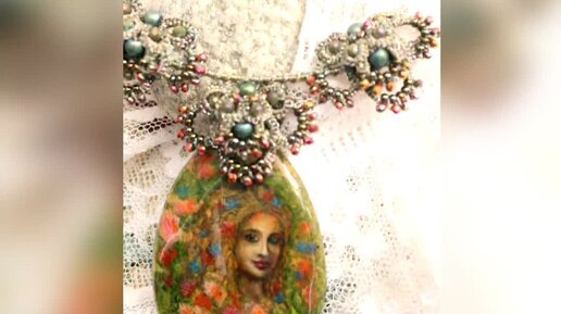 Комплект украшений с росписью на камне " Фея цветов " Лаковая миниатюра. Роспись - Катерина Аксенова. Фриволите - Наталья Батова
