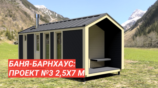 Каркасная баня БАРНХАУС: проект №3 размером 2,5 на 7 метров