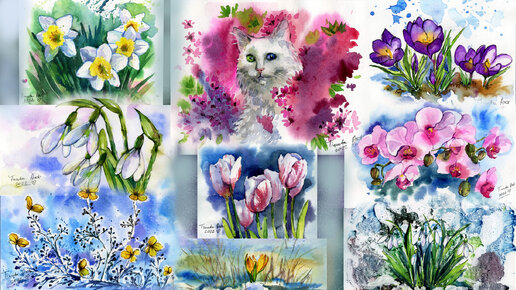 Моя выставка - цветы акварелью, 10 готовых рисунков