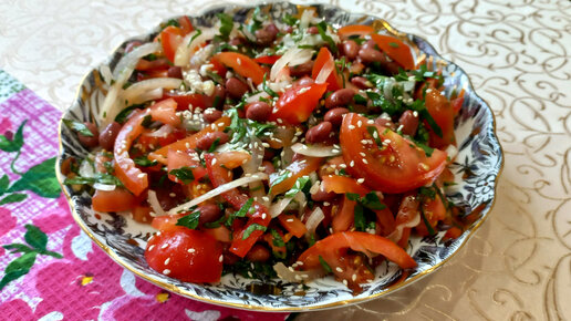 Салат с помидорами и фасолью. Легко и быстро, очень вкусно