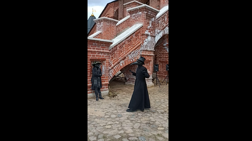 Чумной доктор танцует на Мультивековом фестивале "История в учебниках и наяву" в Москве, на Крутицком подворье