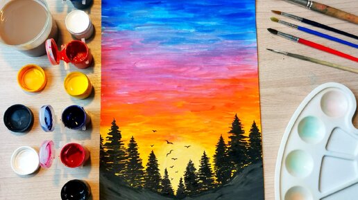 Легкий пейзаж. Рисуем лес гуашью. Мастер класс для детей и для новичков