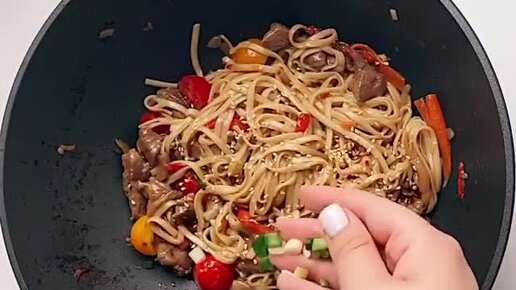 Вкусный удон с индейкой и овощами