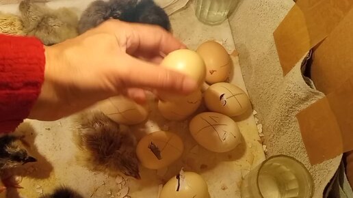 22 день инкубации в коробке с 2-мя лампочками.Вылупление цыплят с лохматыми ножками/И всё таки они красивые, эти цыплята!!!