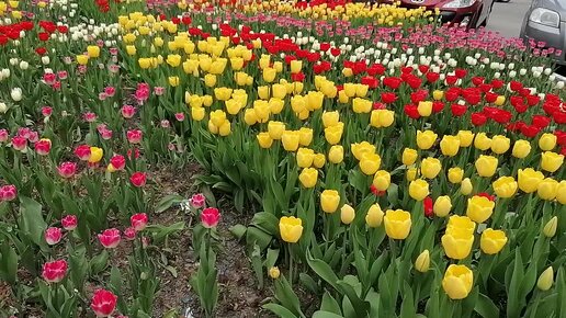 Моря тюльпанов около моего подъезда в Москве. Метро Шаболовская. 13.05.2022