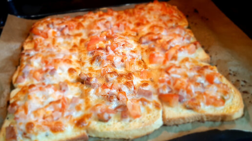 "Ленивая пицца" или горячий мегабутерброт. Вкуснятина на завтрак.