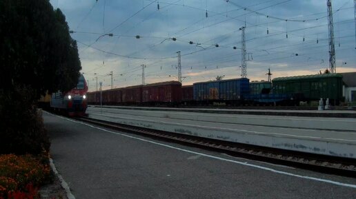 ЭП1М-700 с Рельсошлифовальным поездом URR-112-5A проходит станцию Георгиевск