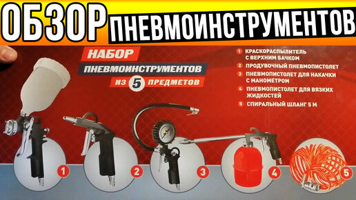 НАБОР ПНЕВМОИНСТРУМЕНТОВ ИЗ 5 ПРЕДМЕТОВ ДЛЯ КОМПРЕССОРА!
